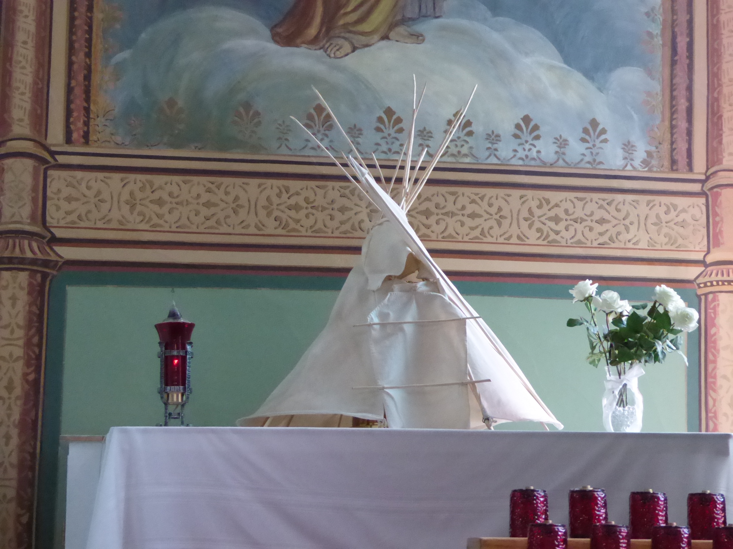 I think given the recent discoveries and controversy surrounding the Catholic Church and Canadian Nuns, in particular, made this visit so very much more poignant, making me think are they considering searching the area to see if there are indeed any First Nation children buried here too? I was also struck by the obvious subjugation of the native language and culture, so reminiscent of Irish history and many other colonised peoples, the use of English names in particular is so very prevalent here. The final point for me is the two life sized paintings inside the church, the male model is named but the woman is not, how very unsurprising… yet another example of where female herstory has been erased. I also notice in the ‘writings’ that a couple of the buildings had burnt down, is that mysteriously? I don’t know, but it would be hardly surprising if it was, again who knows what went on back in those early days?